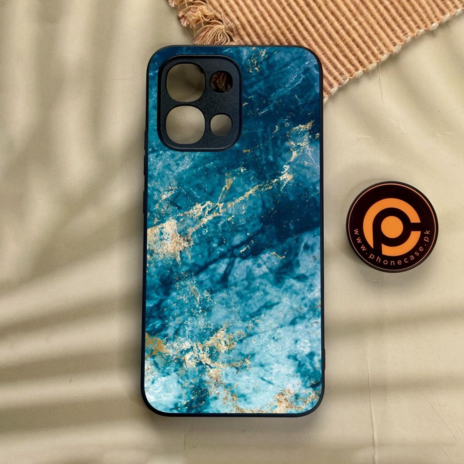 Oppo A6 Pro - Blue Marble Design 4 - Premium Metal Printed Soft Bumper Shock Proof Case